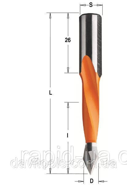 Свердло для свердлильно присадних верстатів CMT D6 d10 L70 h35 (314.060.12) розроблено для висвердлювання наскрізних отворів в твердих породах деревини, деревних матеріалах, пластику і ламінаті. Використовується на свердлильно присадних верстатах. Ідеально для всіх матеріалів. Свердло оснащене двома ріжучими гранями і 2 зубами. Циліндричний Хвостовик з фаскою. Спіраль свердла покрита чорним або оранжевим захисним покриттям. Твердосплавна напайка з лезом, точно розміщеними по центру. Довжина фрези 70 мм. Вона оснащена циліндричним хвостовиком з фаскою довжиною 26 мм і діаметром 10 мм. Довжина робочої частини становить 35 мм, а її діаметр - 6 мм